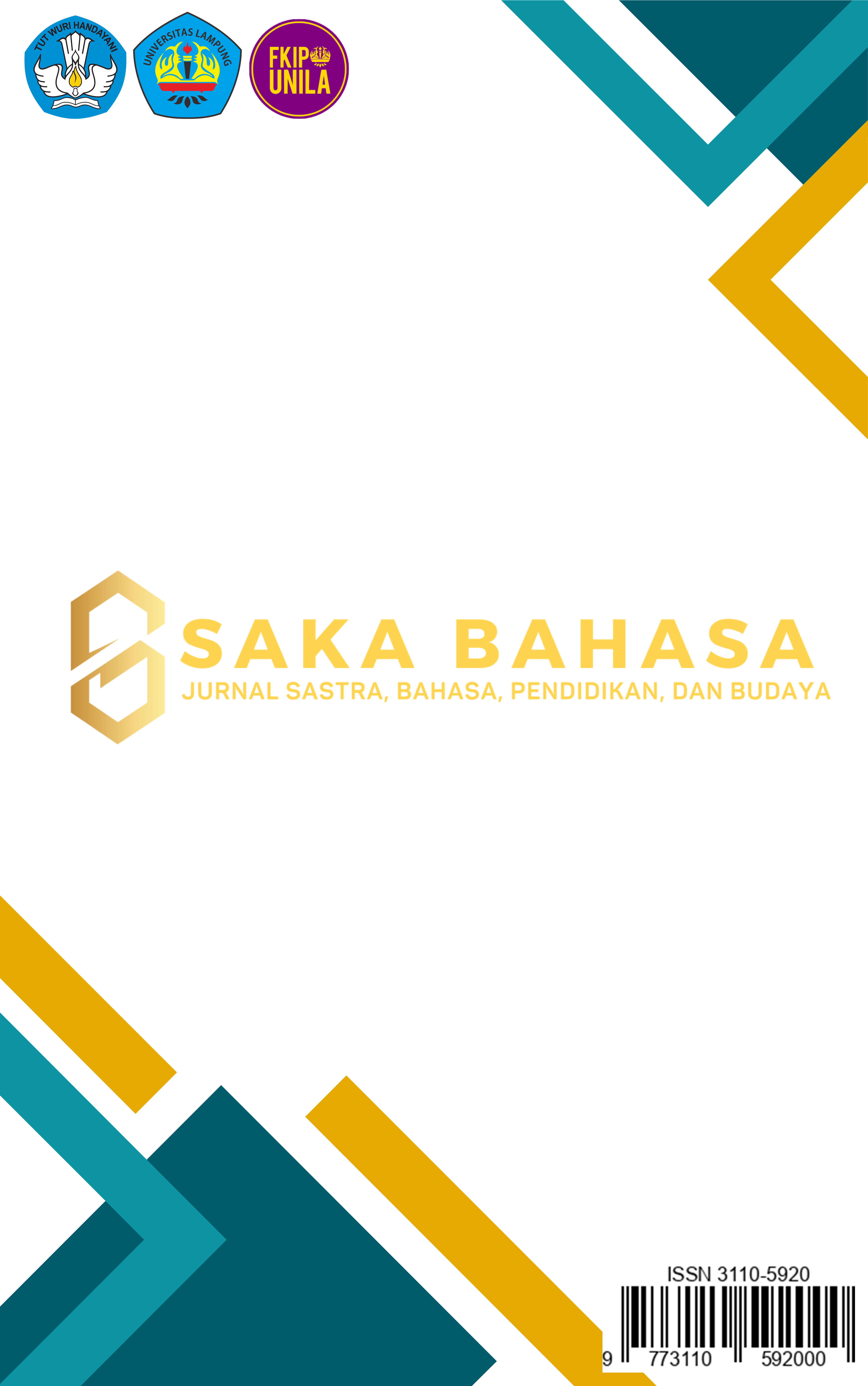 Saka Bahasa merupakan jurnal kajian dan penelitian yang berfokus pada pendidikan, bahasa, sastra, dan budaya. Setiap artikel di Saka Bahasa telah melewati proses telaah pustaka dan penyuntingan sehingga memenuhi standar publikasi ilmiah. Saka Bahasa terbit pada bulan Juli dan Desember setiap tahunnya. E-ISSN: 3110-5920
